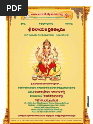 Vinayaka vratha kalpam Uploaded by viswakalyanam Description. Web Vinayaka Chavithi Vratha Kalpam Vratha vidhanam Telugu PDF Lokmanya Balagangadhar Tilak started this Ganesh festival for the first time in India. ఓప శ య వ యణ య వ మ ధ య వ అ మ డ ర కల ర స వకవనసన.